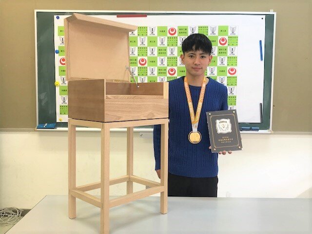 石橋さんは高校在学時から木工工芸部に所属し、インテリア科の実習や部活、技能検定などで木工のスキルを直向きに磨き、高校2年生からは若年者ものづくり競技大会に積極的に出場していました。石橋さんの地道な積み重ねの成果が、このような素晴らしい功績となりました。